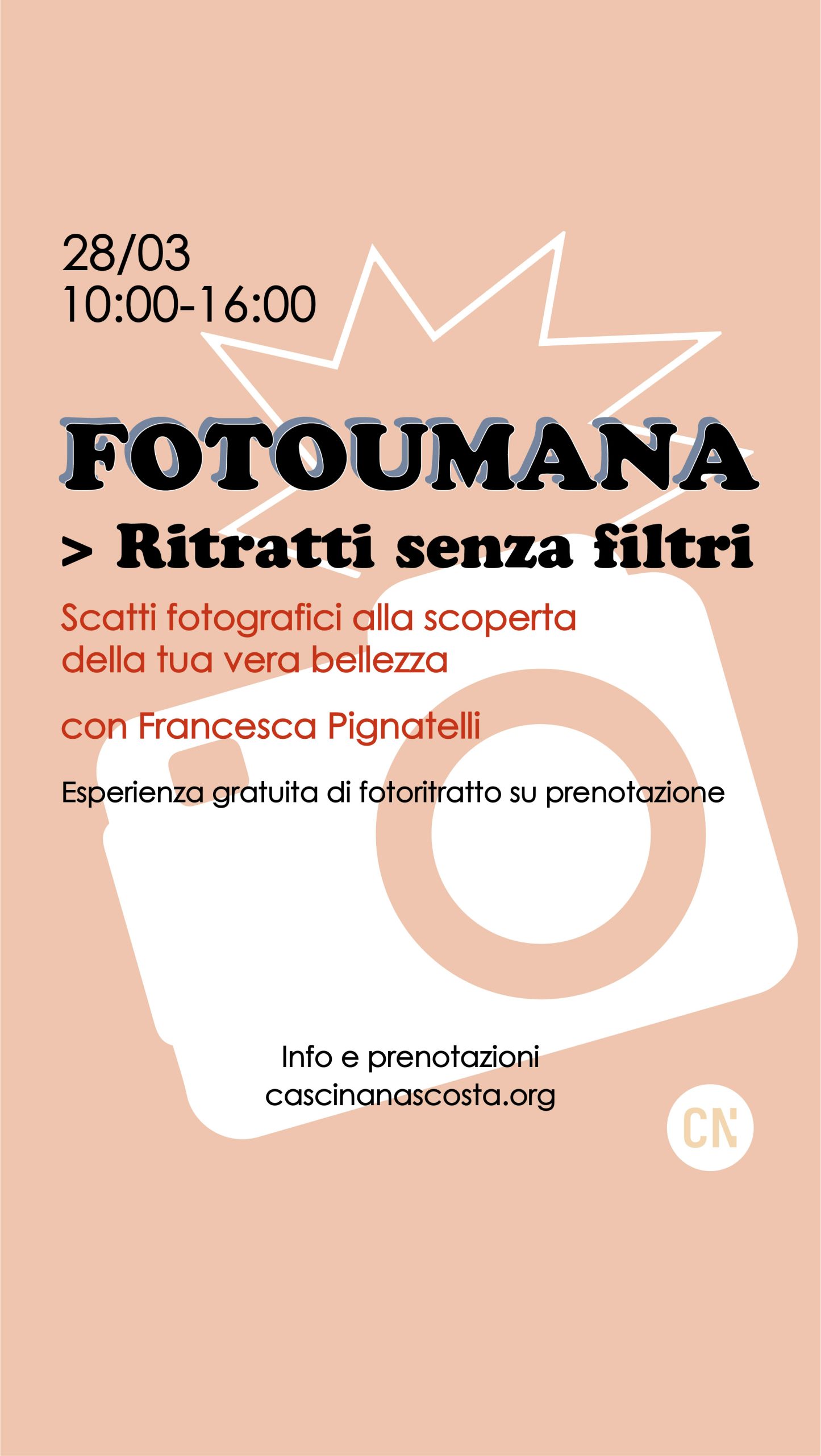 Il laboratorio, gratuito, è strutturato in una sessione di scatti INDIVIDUALE di 20 min.