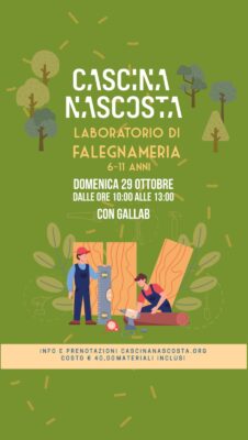 Se vuoi iscriverti ai laboratori e workshop, manda una mail a info@cascinanascosta.org. Dureranno un’ora e saranno gratuiti. Sarà possibile iscriversi a un solo workshop per persone, per dare accesso a più persone possibili.