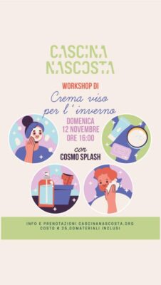 Durante il workshop prepariamo una crema per il viso con un fattore di protezione naturale SPF 10 utilizzando solo ingredienti naturali e vegetali. A fine laboratorio i partecipanti porteranno a casa la crema realizzata, la dispensa con la ricetta e tutte le indicazioni sull’attrezzatura necessaria replicare facilmente nella propria cucina.