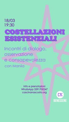 Incontro di dialogo, osservazione e consapevolezza, guidato da Manila. Info e prenotazioni: 3391700247