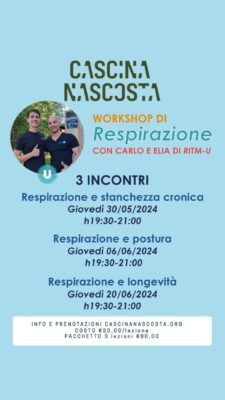 Scopri la nostra nuova proposta di workshop! Previsti 3 incontri con 3 diverse tematiche: “30/05 Respirazione e stanchezza cronica” “06/06 Respirazione e postura” “20/06 Respirazione e longevità ”
